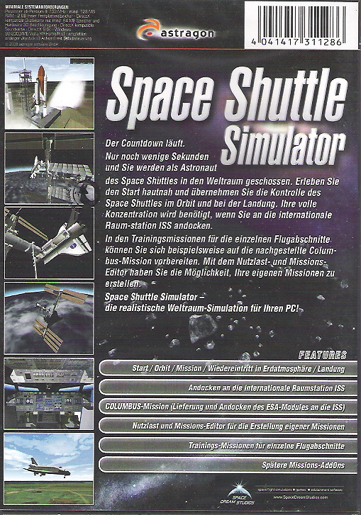 Der Countdown läuft. Nur noch wenige Sekunden und Sie werden als Astronaut des Space Shuttles in den Weltraum geschossen. Erleben Sie den Start hautnah und übernehmen Sie die Kontrolle des Space Shuttles im Orbit und bei der Landung. Ihre volle Konzentration wird benötigt wenn Sie an die internationale Raumstation ISS andocken. In den Trainingsmissionen für die einzelnen Flugabschnitte können Sie sich beispielsweise auf die nachgestellte Columbus-Mission vorbereiten. Mit dem Nutzlast- und Missions-Editor haben Sie die Möglichkeit, Ihre eigenen Missionen zu erstellen. Space Shuttle Simulator - die realistische Weltraum-Simulation für Ihren PC!