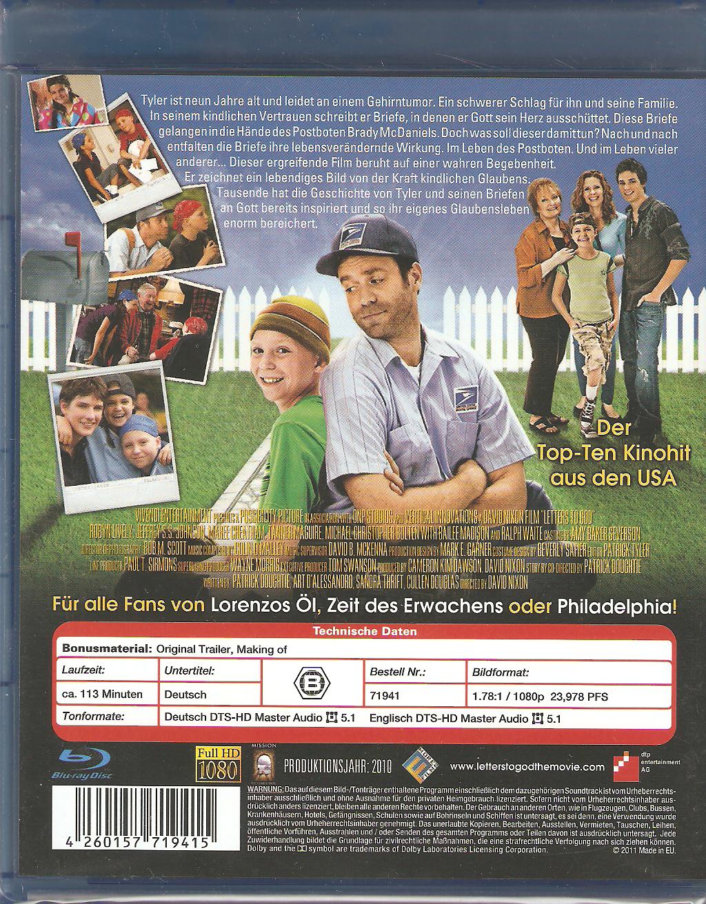 Der acht-jährige Tyler Doherty hat Krebs. Im täglichen Kampf gegen die Krankheit schöpft er seine Kraft aus dem Glauben an Gott. So schreibt er seine Gebete auf und schickt diese in Form von Briefen, aus seinem Krankenbett direkt an Gott. Die Briefe, die Tyler schreibt, landen schließlich in den Händen des alkoholabhängigen Postboten Brady McDaniels, der keinen Sinn mehr in seinem Leben sieht. Zunächst ist er etwas verwirrt, als er die Briefe liest und weiß mit ihnen nichts anzufangen, aber dann schöpft er daraus neue Inspiration und Kraft für sein Leben. David Nixon (Making Waves) inszenierte eine mitreißende Geschichte von Patrick Doughtie, die auf einer wahren Begebenheit beruht.
