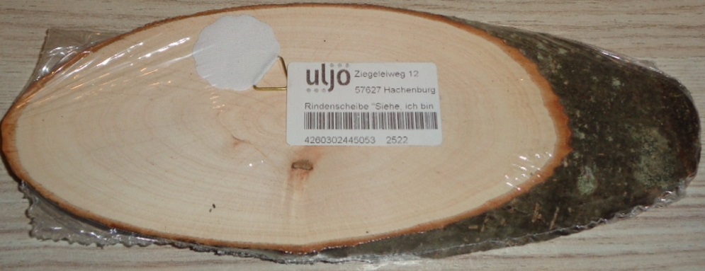 Baumrindenscheibe Oval, mit feinem Samtflock-Aufdruck, ca. 24 cm breit.