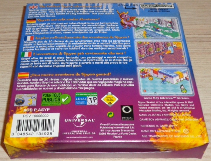 Manche PlayStation Besitzer unter euch werden ''Spyro'' vielleicht schon kennen. Und die Fortsetzung erwartet uns jetzt auf unserem allseits beliebten GBA. Von Sony zu Nintendo, lautet wohl das Motto. Somit hätten wir eine weiterere Fortsetzung, nicht dass das schlecht wäre, ganz im Gegenteil: Es ist doch schön, einen ''Alten Freund'' wiederzutreffen, und mit ihm ein neues Abenteuer zu erleben. Die Story: Ihr bekommt eine Nachricht, dass alle Feen im Land mit einem Fluch eingefroren wurden, und prompt macht ihr euch auf den Weg, um eure Freunde in 30 Leveln zu retten. Das Spiel vertritt ein breites Genre, denn es gibt auch ein komplettes Racing Level, indem ihr ein Rennen fährt, und ein Flug Level. Spyro ist sehr schön und detailreich animiert worden, wie der Rest des Spieles auch. Der Drache hat auch nette Tricks auf Lager. Gesteuert wird von einer seitlich-isometrischen Perspektive, die überzeugen kann!