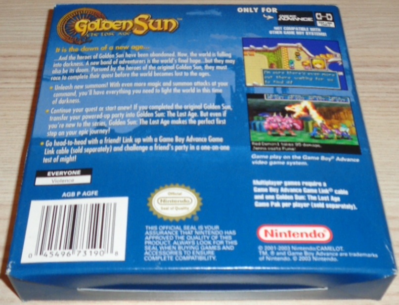 2. Episode des erfolgreichen Rollenspiels Golden Sun. Atemberaubende, detaillierte Grafiken im Manga-Stil. Grenzenloses Spielvergnügen dank nichtlinearem Spielverlauf. Multiplayer-Action für 2 Spieler über das Game Boy Advance Game Link Kabel (seperat erhältlich).