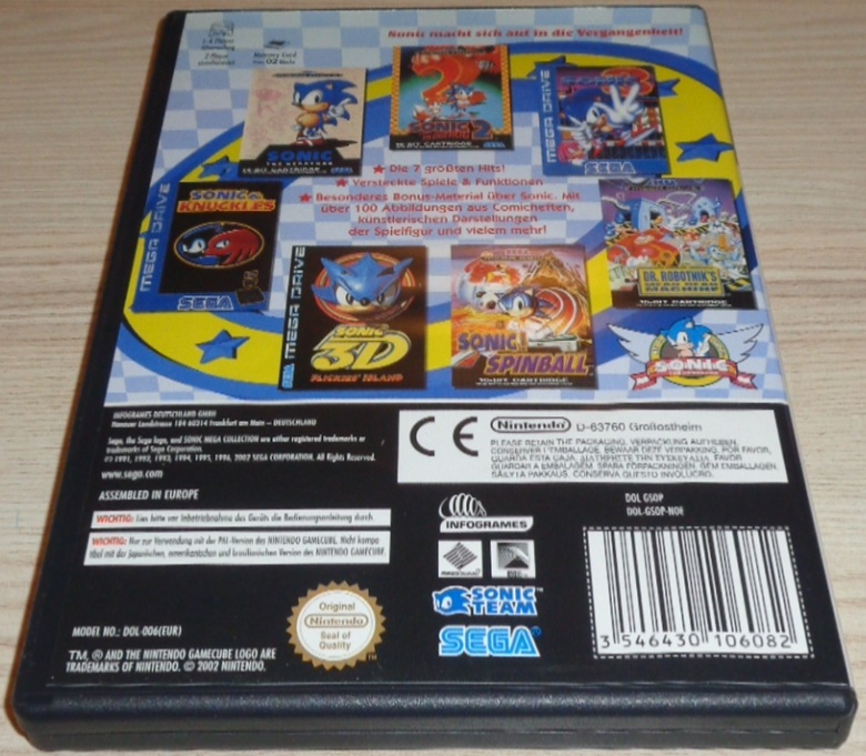 Der weltberühmte blaue Igel aus dem Hause SEGA gibt sieben seiner preisgekrönten Abenteuer zum besten - exklusiv für Nintendo GameCube. Sonic ist bis heute einer der beliebtesten und bekanntesten Spielecharaktere der Welt und die Abenteuer mit dem SEGA-Maskottchen in der Hauptrolle gehören zu einer der erfolgreichsten Spieleserien aller Zeiten. Inhalt: Die Sonic Mega Collection beinhaltet perfekte Umsetzungen der folgenden Sonic-Hits: Sonic the Hedgehog, Sonic 2, Sonic 3, Sonic and Knuckles, Sonic 3D Blast, Sonic Spinball, Dr. Robotnik's Mean Bean Machine; Darüber hinaus bietet Sonic Mega Collection freispielbare Bonus-Games und einen Extra-Modus: Erkunden Sie die Art-Gallery und erleben Sie Sonic-Filme, Comics und viele andere Überraschungen.
