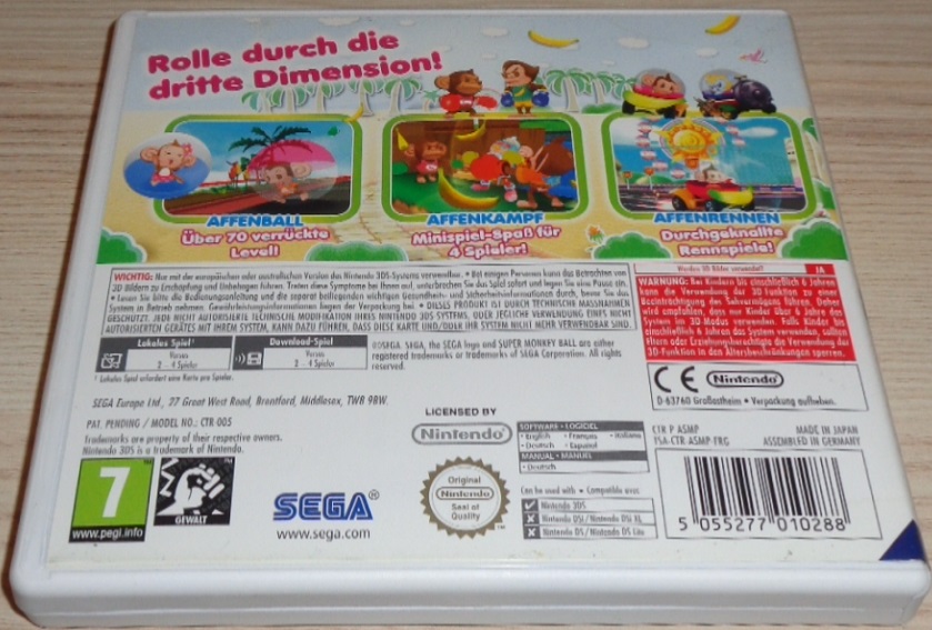 Verrückte Mehrspieler-Action: Treten Sie über die Drahtlosverbindung gegen bis zu 4 Spieler im Affen-Rennen und Affen-Kampf an und erleben Sie den besten 3D-Mehrspielerspaß, den Sie in der Hand halten können.