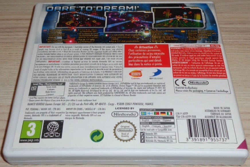 Dream Trigger 3D ist ein aktionreicher Arcade-Shooter, in dem Spieler Sonartechnik einsetzen, um zahlreiche bunte Gegner zu entdecken, um ihnen dann in 3D-Explosionen ein Ende zu bereiten. Die Einführung des neuen Nintendo 3DS Systems erlaubt Spielern, Arcade-Shooter in einer völlig neuen Perspektive wahrzunehmen, die es vorher auf Handheld-Systemen nicht gab. Dream Trigger 3D begeistert durch seine faszinierende Atmosphäre.