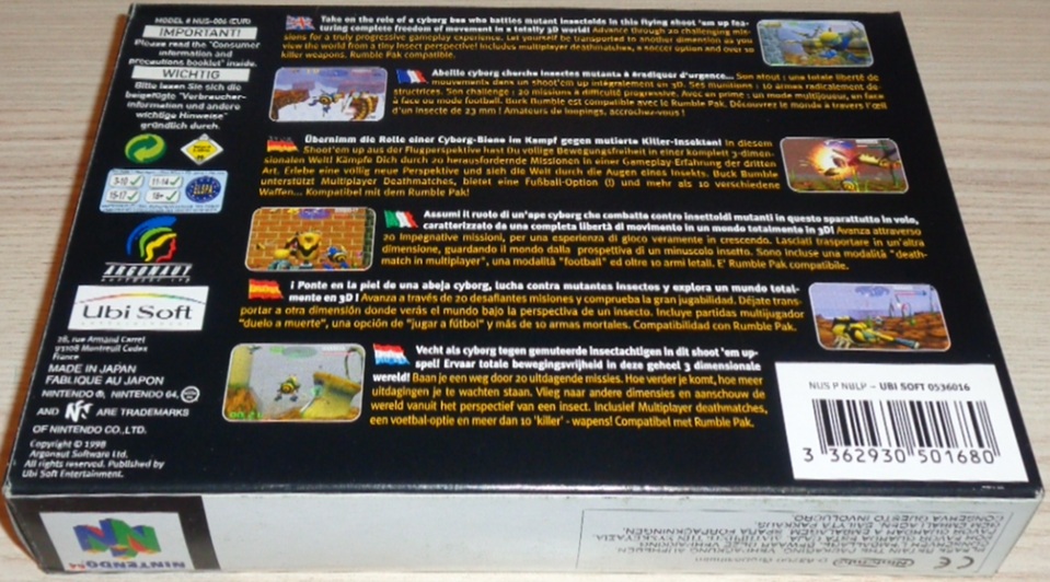 Übernimm in Buck Bumble die Rolle einer Cyborg-Biene im Kampf gegen mutierte Killer-Insekten! In diesem Shoot'em up der Flugperspektive hast du völlige Bewegungsfreiheit in einer komplett 3-dimensionalen Welt! Kämpfe dich in Buck Bumble durch 20 herausfordernde Missionen in einer Gameplay-Erfahrung der dritten Art. Erlebe eine völlig neue perspektive und sieh die Welt durch die Augen eines Insekts. Buck Bumble unterstützt Multiplayer Deathmatches, bietet eine Fussball-Option und mehr als 10 verschiedene Waffen.