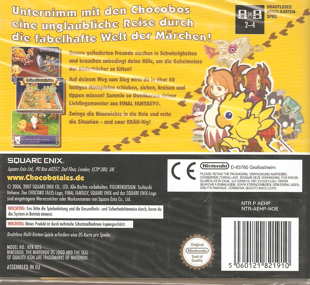 In "Final Fantasy Fables: Chocobo Tales" trifft man auf bekannte Final-Fantasy-Kreaturen und -Monster in ihrem eigenen Abenteuer! Unsere gefiederten Freunde aus Final Fantasy stecken in Schwierigkeiten. Sie brauchen Hilfe, um das Geheimnis der verzauberten Bilderbücher zu lüften! Auf dem Weg ins Abenteur müssen sich Chocobo-Champions in über 40 spannenden Minispielen gegen die Konkurrenz durchsetzen und mithilfe des Stylus schieben, ziehen und tippen, dass der Touchscreen raucht! Mit Duellkarten der bekannten Monster aus Final Fantasy werden üble Bösewichte in die Knie gezwungen. Ein kleiner gelber Vogel wird zum furchtlosen Retter der Nation in diesem familienfreundlichen und grafisch zauberhaften Rollenspiel der etwas anderen Art.
