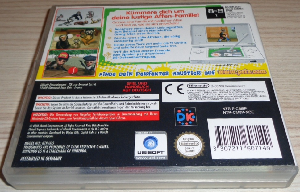 Auswahl der Affen aus verschiedenen Rassen: inklusive Totenkopfäffchen, Weißgesicht-Kapuziner und Gorilla. Verschiedene Mini-Spiele sorgen dafür, dass der lebhafte junge Affe keine Langeweile bekommt und eine enge Beziehung zum Spieler aufbaut. Mit anderen Spielern können per drahtloser DS-Datenübertragung neue Spielzeuge, Kleidung und einzigartige Babys getauscht werden. Diese erhält der Spieler im Verlauf des Spiels. Neue Landschaften kommen ebenfalls im Spielverlauf hinzu. Der Spieler begleitet seine Affen durch verschiedenen Wachstumsphasen: vom Baby übers Kleinkind bis zum erwachsenes Tier. Erstmals können verschiedene Spezies gekreuzt werden, um ganz besondere Affen-Familien zu erschaffen. Die Interaktion untereinander beobachten: Erstmals können drei Tiere gleichzeitig gehalten werden. So kann der Spieler beobachten, wie sie sich gegenseitig aufnehmen und miteinander interagieren. Mehrspielermodus mit bis zu drei Spielern, ein affiges Vergnügen.