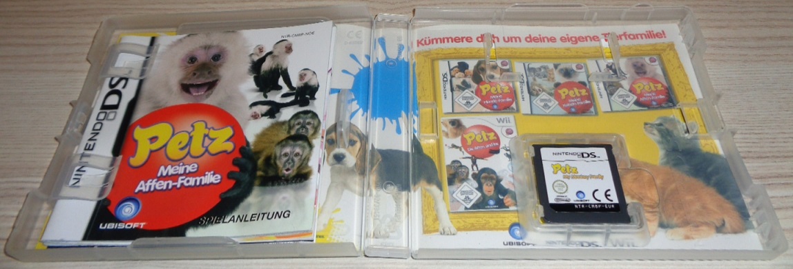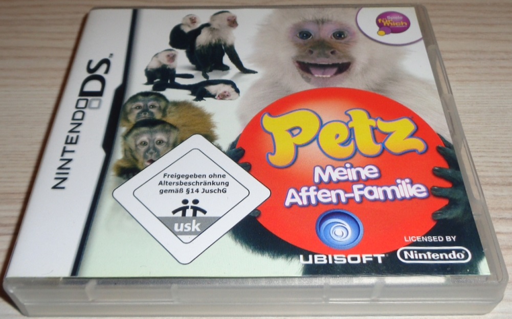 In Petz Meine Affen-Familie bringt der Spieler seinem Affen den richtigen Umgang mit seinen Artgenossen bei und kümmert sich liebevoll um die kleinen Rabauken. Lustige Mini-Spiele, Spielzeug und sogar kleiner Nachwuchs stehen als Belohnung bereit. Die Rassen lassen sich auch untereinander kreuzen und sorgen so für die Entstehung einzigartiger Affen-Familien.