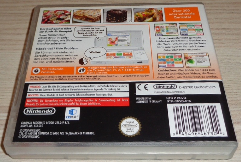 Bringen Sie den Lieferdienst zum Kochen - denn Nintendo bittet zu Tisch! Kochkurs - Was wollen wir heute kochen? ist im wahrsten Sinne des Wortes die heißeste Nintendo-Innovation der letzten Monate: Das perfekte Dinner wird, Nintendo DS und Kochkurs sei Dank, endlich ein Heimspiel! Denn der Nintendo DS verwandelt sich in eine dezente und kompetente Küchenhilfe, die bequem neben dem Herd mit über 250 Rezepten wie Kartoffelsuppe mit Speck, Kürbisgnocchi oder frittierten Meeresfrüchten die Geschmacksknospen zum Blühen bringt. Die Gerichte können nach unterschiedlichen Kategorien ausgewählt werden: Figurbewusste Frauen und Männer suchen sich nach dem Fitness-Training aus dem Rezeptfundus etwas aus, was einen vorgegeben Kaloriengehalt nicht übersteigt; Entdecker wählen nach der Herkunft der Speise und alle anderen geben einfach ein, was sich in ihrem Kühlschrank findet und sind gespannt darauf, mit welchem Rezept sie Kochkurs überrascht. Ob Blanchieren, Tranchieren oder einfach Abschrecken - die Gerichte werden Schritt für Schritt erklärt, zahlreiche Videos, Bilder und eine detaillierte Sprach-Anleitung geben wichtige Tipps zum Kochen und praktischerweise gibts keine Fettflecken, weil alles per Sprachbefehl gesteuert wird. Kochkurs ist das beste Rezept für Nintendo DS, damit der Schornstein raucht.