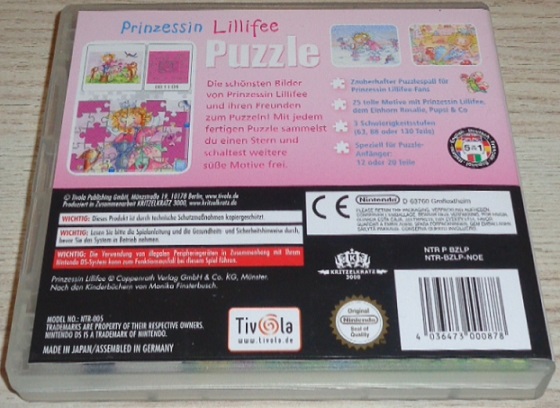 Puzzlespass für Lillifee-Fans. 2 Spielstärken: Anfänger und Profi (Maxi- und Minimodus). 3 Schwierigkeitsstufen im Maximodus (63, 88 oder 130 Teile). 2 Schwierigkeitstufen im Minimodus (12 und 20 Teile).