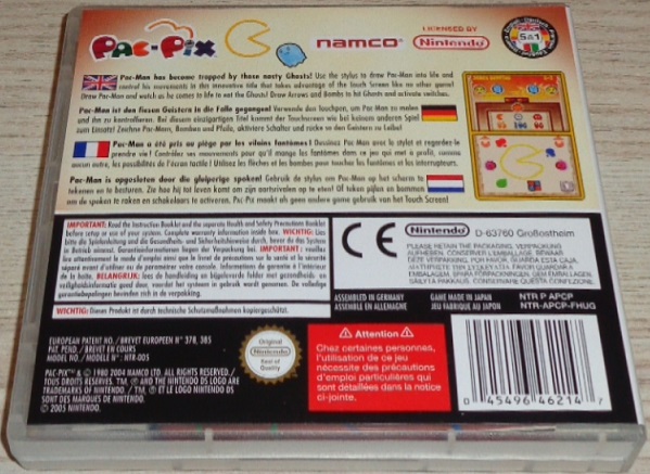 Bei seiner neuesten Geisterjagd hat Pac-Man einen ganzen Sack neuer Tricks im Gepäck! In PAC-PIX für den Nintendo DS kannst du mit dem Touchscreen und dem Touchpen deinen eigenen Pac-Man malen und ihn mit dem Pen über den Bildschirm steuern, so dass er Items einsammeln, Punkte einsammeln und Geister vertilgen kann. In den insgesamt 60 Levels musst du schon voll bei der Sache sein, um dir die Gespenster zu schnappen. Du erwischst sie allerdings nur, wenn du aus einer bestimmten Richtung angreifst. Deshalb ist es sehr nützlich, dass du dir eigenhändig Ausrüstungsgegenstände wie Bomben und Pfeile malen kannst, die dir im Kampf gegen die nervigen Plagegeister und bei wilden Begegnungen mit den Bossgegnern helfen. PAC-PIX ist ein (aus)gezeichnetes Abenteuer - nicht nur für Fans des gelben Geisterjägers!