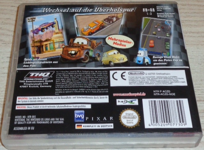 Ein Rennspiel-Adventure, mit dem alle Schlüsselmomente des Films noch einmal erlebt werden können! Mehr als 10 spielbare Charaktere und die Möglichkeit mit den wichtigsten Film-Charakteren zu interagieren. Mehr als 20 verschiedene Rennen und Minispiele - viele davon im Mehrspielermodus. Riesige, frei zu erkundende Spielwelt in Radiator Springs und Ornament Valley. Mehrspieler-Modus für 4 Spieler. WiFi-Unterstützung.