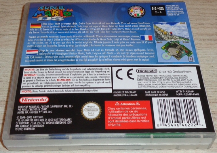Eine neue Welt erwartet dich. Erlebe Super Mario 64 auf dem nintendo DS - mit neuen Charakteren, Kursen, Spielmodi! Spiele als Mario, Yoshi, Luigi und sogar als Wario. Jeder von ihnen besitzt andere Fähigkeiten. Hole dir 150 Sterne - 30 Sterne mehr als in dem Klassiker. Tritt gegen bis zu 3 Freunde im Vs.-Modus an und kämpfe um die Sterne. Versuche dich an neuen Mini-Spielen, die sich mit der Hand (oder dem Touchpen) steuern lassen.