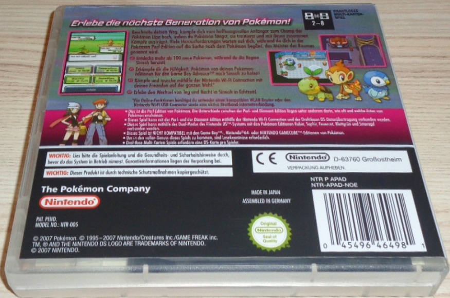 Grösstes Pokemon Abenteuer aller Zeiten. Mit neuen Herausforderungen in der geheimnisvollen Region Sinnoh. Über 100 neue Pokemon mit individuellen Fähigkeiten. Pokemon Wettkämpfe und Tausch von Pokemon über Nintendo Wi-Fi Connection - weltweit! Weltweites Chatten über Nintendo Wi-Fi Connection und eingebautem Mikrofon. Kompatibel mit den Game Boy Advance Editionen Rubin, Saphir, Feuerrot, Blattgrün und Smaragd. Drahtloser Multiplayer-Spass für bis zu 8 Spieler. Komplette Nutzung aller Nintendo DS Features.