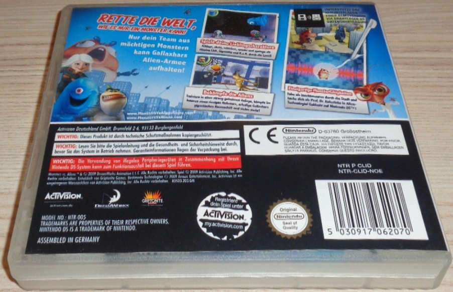 Das Videospiel Monsters vs. Aliens™, basierend auf dem 3D-Kinofilm von DreamWorks Animation, legt das Schicksal des Planeten in die Hände des Spielers, der mit einem Team von fünf nicht wirklich gesellschaftsfähigen Ungeheuern versuchen muss, die Welt zu retten – und zwar auf Monsterart! Im Spiel können die Fans die Action und den Humor des Films als Missing Link, der halb Affe, halb Fisch ist, als der glibberige, unzerstörbare und ständig hungrige B.o.B., als 20-Meter-Frau Gigantika und als monströse, 100 Meter grosse Made Insektosaurus neu erleben. Die Spieler müssen die Stärken, die Grösse und die besonderen Fähigkeiten jedes Charakters einsetzen, um riesige Alien-Roboter abzuwehren, die Chaos auf der Erde verbreiten. Freunde und andere Familienmitglieder können jederzeit in eine laufende Partie einsteigen – als der brillante Wissenschaftler Prof. Dr. Kakerlake im einzigartigen Koop-Mehrspieler-Modus. Spielen Sie als Ihr Lieblingsmonster aus dem Film.