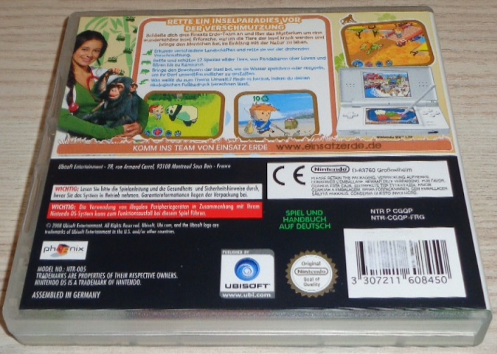 Ein großes Abenteuer, in dem mit den anderen Bewohnern das Mysterium um die Insel aufgedeckt wird. Aufbau einer umweltgerechten Farm mit Rücksicht auf Natur und Tiere. Rettung bedrohter Tiere: Die Insel ist ein Naturparadies. Vier verschiedene Naturzonen (Wald, Taiga, Savanne, Wüste) mit insgesamt 12 wilden Tierarten gilt es zu retten. Entwicklung von umweltfreundlichen Verfahren zur Energiegewinnung, Recycling, neue ökologische Möglichkeiten und Hilfsmittel, um die Verschmutzung zu bekämpfen. Kontrolle über die ganze Insel: Erweitern der biologischen Vielfalt, Entdecken der Pflanzenwelt, Besiedeln einzelner Bereiche mit neuen Hilfsmittel und Lösungen. Berechnung des eigenen Ökologischen Fußabdrucks durch einen Fragebogen zum eigenen Umweltverhalten und Vergleichsmöglichkeit mit Freunden. Zielgruppe: Jungen und Mädchen, 8-14 Jahre. Ein Titel Reihe Einsatz Erde, in der das Umweltund Tierschutz-Interesse geweckt und auf spielerische Weise geschult wird. In Zusammenarbeit mit dem WWF.