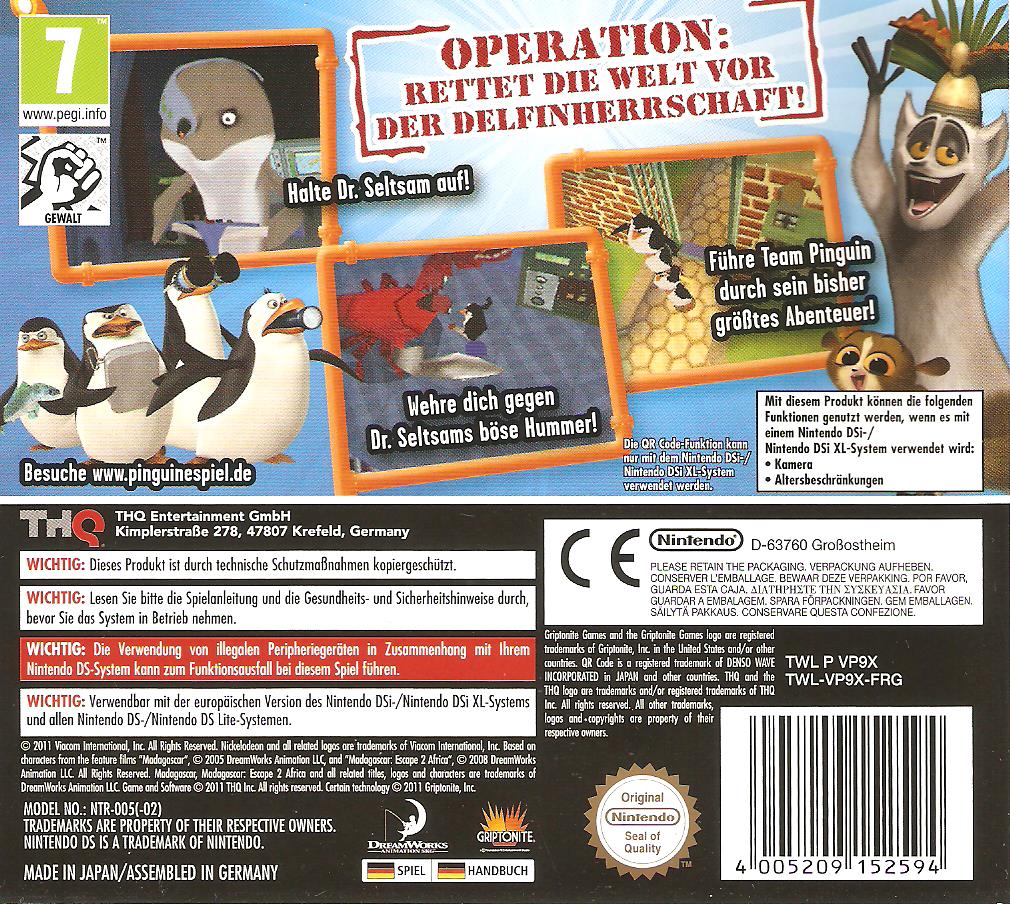 Der hinterlistige Delphin Dr. Seltsam will die Welt erobern und ihm ist jedes Mittel recht. Um seinen finsteren Plan zu verwirklichen, braucht er die Fähigkeiten der berühmten Pinguine – ob sie wollen oder nicht! Der Spieler übernimmt die Kontrolle über das Team der Pinguine, um mit Hilfe der individuellen Fähigkeiten von Skipper, Kowalski, Private und Rico genau das zu vereiteln. Ein witziges und verrücktes Abenteuer quer durch den gesamten Zoo und darüber hinaus steht bevor!
