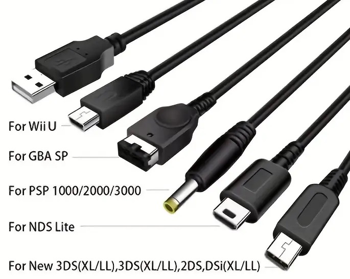 Dieses geniale Multi-Ladekabel lädt ganz einfach via USB folgende Spielkonsolen auf: Game Boy Advance SP, Nintendo DS, Nintendo DS Lite, Nintendo 3DS, Nintendo 2DS, Nintendo WiiU GamePad und Sony Playstation Portable (PSP).