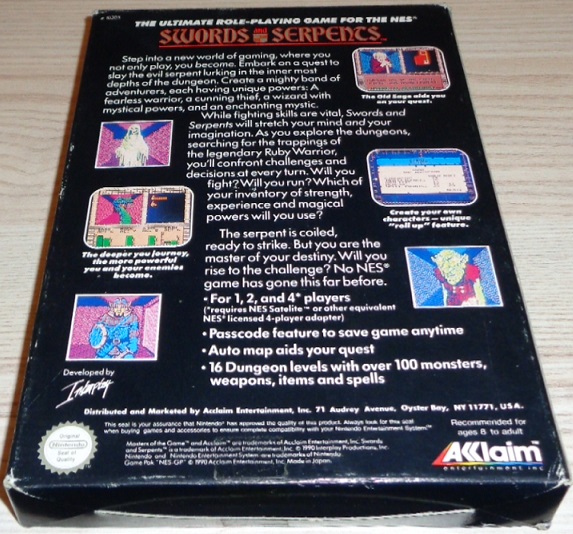 Erstelle deinen eigenen Charakter und gehe mit einer Gruppe auf eine spannende Reise durch 16 Dungeon-Levels. Dieses First-Person RPG bietet über 100 Monster, Waffen, Items und Zaubersprüche und bietet somit jede Menge Abwechslung. Dank dem Passwortsystem kannst Du in Swords & Serpents deinen Fortschritt speichern. Fülle in Tempeln die Gesundheit und das Mana deiner Gruppe wieder auf und ziehe weiter durch den gefährlichen Dungeon, bis zum Drachen, der schon so viele Abenteurer vorher in eine Falle gelockt hat. Kannst Du ihn in besiegen und lebend aus dem Dungeon entkommen?