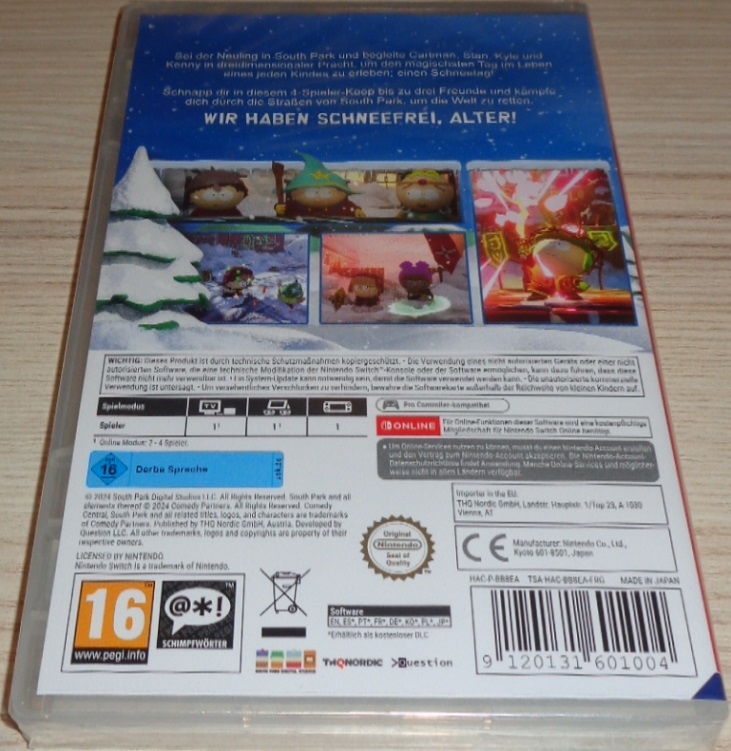 Kämpfe dich in einem brandneuen 3D-Koop-Spiel durch die verschneiten Strassen von South Park. Ein gewaltiger Schneesturm ist über South Park hinweggefegt und nun liegt es an Cartman, Stan, Kenny, Kyle und dir, dem Neuling, die Stadt vor dem ewigen Winter zu retten. Erlebe zum allerersten Mal Koop-Gameplay mit bis zu drei Freunden oder KI-Verbündeten in South Park - entfesselt zusammen mächtige koordinierte Angriffe auf die Gegner. Rüste dich mit vernichtenden Nah- und Fernkampfwaffen aus und werte sie weiter auf. Setze Spezialfähigkeiten und Kräfte ein, die ganze Gegnerhorden und epische Bosse in die Knie zwingen werden. Greif auf eine Vielzahl berühmter Anpassungen zu und gestalte deinen Neuling mit endlosen möglichen Optionen von Mützen bis hin zu einem "Cheesy Poof"-T-Shirt und Kinnklöten selbst.