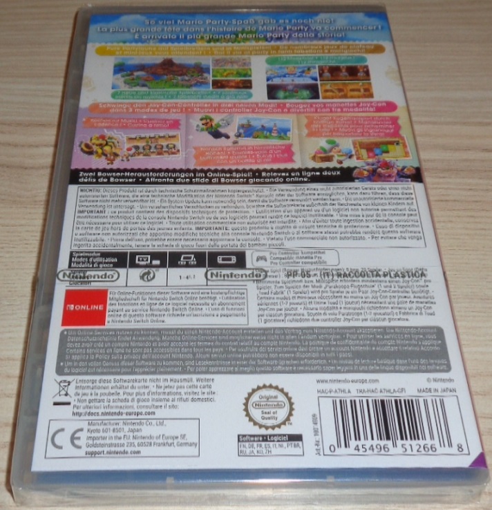 Mit Rennen durch Karussells bis zu bewegungsgesteuertem Minigolf bietet diese proppenvolle Partypackung über 110 Minispiele - die meisten aller Mario Party-Spiele bisher! Mit insgesamt sieben Spielbrettern kannst du dich in der Gumba-Lagune dem Wechsel der Gezeiten hingeben, im Regenbogen-Kaufpalast nach den Sternen suchen, im Western-Land und in Marios Regenbogenburg aus vorherigen Titeln klassisches Ambiente erneut geniessen und mehr. Düse im Bowserathlon über das Partybrett, dem ersten Online-Wettkampf dieser Reihe für 20-Spieler, und finde heraus, wer die meisten Punkte macht in Minispielen wie dem rasanten Gleiter-Goldrausch. Je höher dein Punktestand pro Runde, desto schneller gelangst du ans Ziel. Der Bowserathlon ist nur einer von zahlreichen zusätzlichen Modi - für jede Art von Mario Party-Spieler gibt es etwas zum Spasshaben