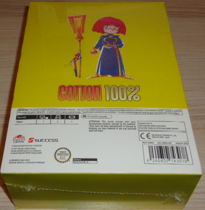 Cotton 100% wurde 1994 veröffentlicht und basiert auf dem Original Cotton: Fantastic Night Dreams. Es bietet einen atemberaubenden und frischen neuen Look mit der bunten Farbpalette des Super Famicom.