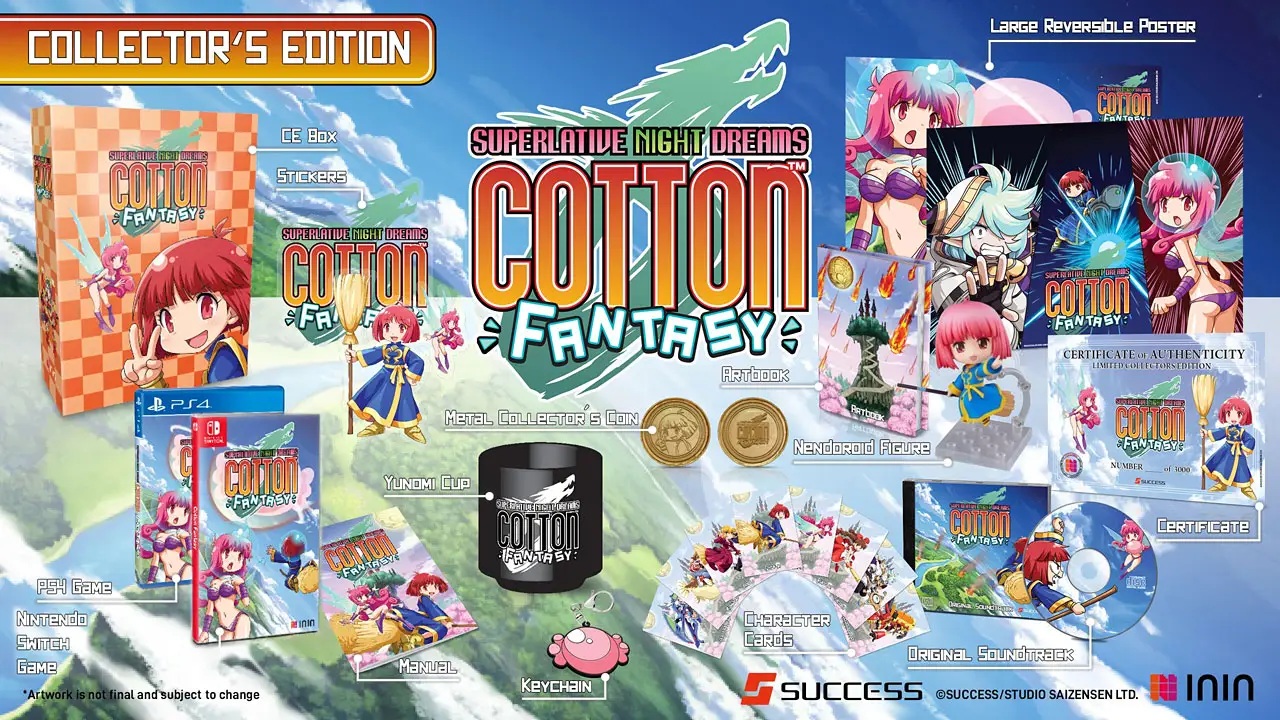 Ein brandneues Cotton-Spiel mit moderner HD-Grafik, nicht nur ein Remake. 6 spielbare Charaktere mit unterschiedlichen Mechaniken und Angriffen, darunter sogar Gäste wie Umihara Kawase und Luffee aus Doki Doki Poyacchio. 16 farbenfrohe und individuelle Stages mit unterschiedlichen Gegnern und Bossen. Ein energetischer Soundtrack mit kultigen, neu bearbeiteten Titeln aus früheren Spielen. Enthält Spielfunktionen aus anderen Shoot 'em up-Spielen von Success, darunter das "Buzz"-System von Psyvariar und die "Time Attack"-Mechanik von Sanvein. Vergleichsweise leicht zugängliches Shmup-Spiel. Unbeschwerte Geschichte mit lustigen und charmanten Zwischensequenzen mit japanischer Stimme, die sowohl für Fans der Serie als auch für Neueinsteiger geeignet sind. Strebe mit den integrierten Ranglisten nach der höchsten Punktzahl in deinem Land.