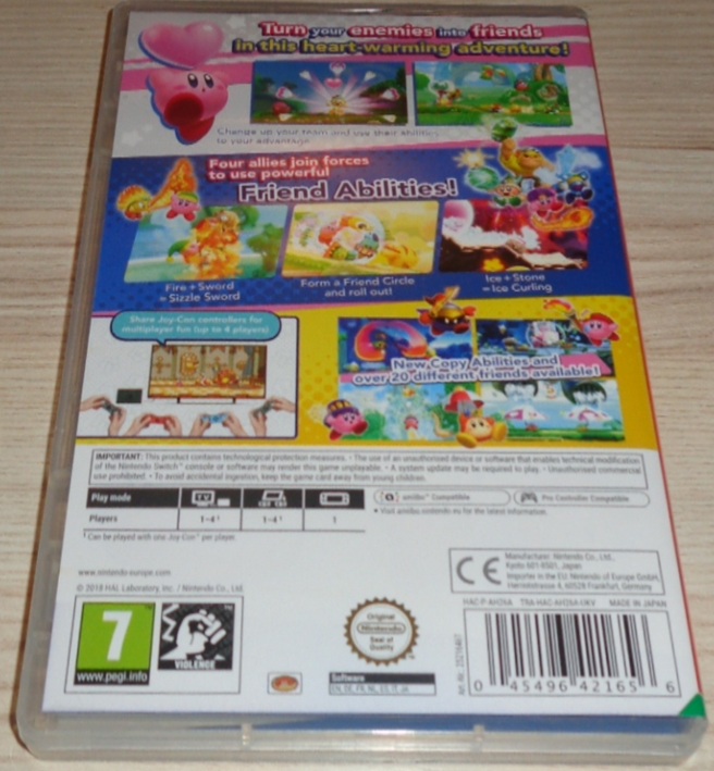 Der neueste Kirby-Titel erscheint für Nintendo Switch in HD-Grafik. Rekrutiere drei Gegner als Helfer, indem du sie mit Herzen triffst. Viele bekannt Kopierfähigkeiten sind auch diesmal wieder mit dabei, darunter Schwert, Feuer, Wasser, Bombe, Besen und viele weitere! Versehe deine Kopierfähigkeiten mit den Eigenschaften verschiedener Elemente wie Wind, Wasser, Feuer und Elektrizität, indem du sie von deinen Helfern ausleihst oder ihnen gibst. Dies erhöht die Angriffstärke und ermöglicht dir das Ausführen mächtiger Attacken und das Lösen von Rätseln. Bis zu vier Spieler können mit horizontal gehaltenen Joy-Con gemeinsam spielen. Besitzt ihr acht Joy-Con, kann jeder Spieler eine Joy-Con-Halterungen mit jeweils zwei Joy-Con verwenden.