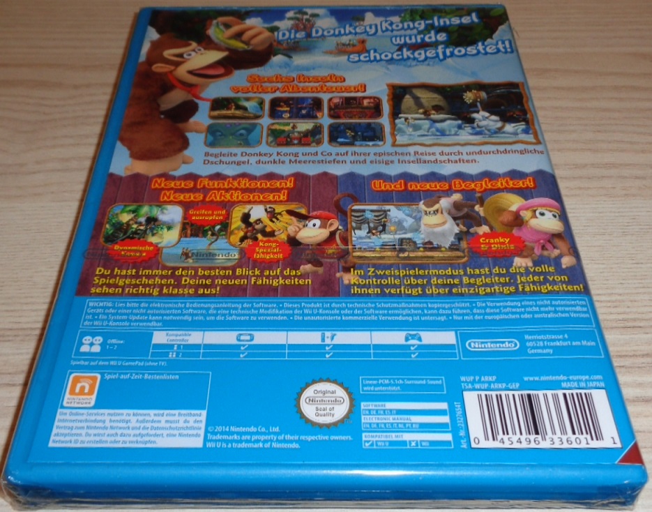 Jetzt geht ´s los: Donkey Kong kommt auf Wii U! Helfe Donkey Kong und seinen Freunden dabei, im neuen Spiel der Retro Studios Donkey Kong Country: Tropical Freeze, ihre Heimat von den Wikinger zu befreien. Das von Fans geliebte Donkey Kong-Abenteuer kehrt erweitert mit neuen Gameplay-Elementen und Spezialfähigkeiten zurück. Dixie Kong ist zurück, um die Abenteuer als spielbarer Charakter neben Diddy Kong zu bewältigen. Beide bieten zusammen mit Donkey Kong, aber auch einzeln, verschiedene Gameplay-Möglichkeiten. Spieler erkunden neue dynamische Level, die sich verändern und transformieren. Fans erleben spektakuläre Perspektiven durch die neue dynamische Kamera. Auf ihrem Abenteuer, um Donkey Kong Island zu befreien, bereisen Donkey Kong und seine Freunde fünf Inseln. Jede bietet einzigartige Umgebungen, beispielsweise mit Unterwasserwelten und gefrorenen Gebieten. Spieler erkunden mit Donkey Kong verborgene Geheimnisse, indem sie mithilfe einer neuen Fähigkeit Gegenstände aus dem Boden ziehen. Im Multiplayer-Modus verbünden sich Spieler mit Freunden. Donkey Kong Country: Tropical Freeze bietet völlig neue Möglichkeiten, den Dschungelspass zu zweit zu meistern und zu genießen.