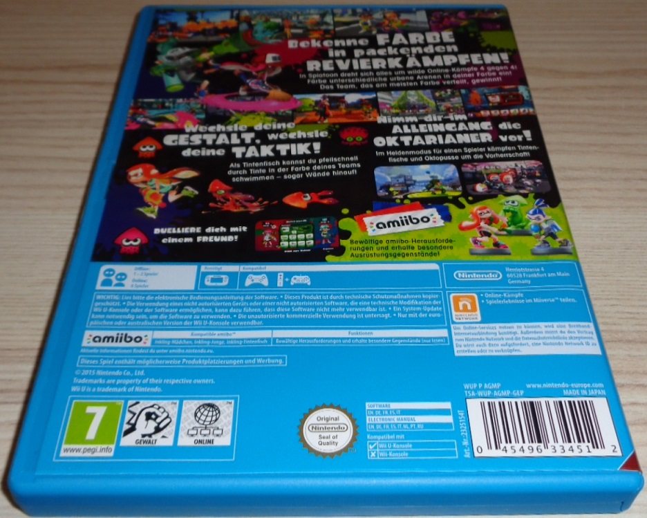 Auf Knopfdruck können sich die Spielfiguren in Tintenfische verwandeln und in ihre eigene Tinte eintauchen. Das bringt eine Menge Vorteile mit sich: So können sie sich beispielsweise schneller von A nach B bewegen, sich vor Gegnern verstecken oder ihre Tintentanks wieder auffüllen. Das Wii U GamePad bietet den Spielern verschiedene Steuerungsoptionen. Durch die Bewegungssteuerung ist es beispielsweise möglich, sich im Spiel umzuschauen und zu zielen. Die actionreiche Tintenschlacht erscheint exklusiv für Wii U. Für Online-Matches ist ein Breitbandzugang notwendig.
