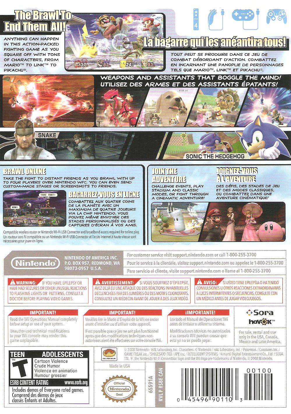 Nintendos Beatem-up-Hit kommt für Wii - so gross, so packend, so wild wie nie zuvor. Denn dann bringt Nintendo seinen legendären Beatem-up-Hit für die innovative neue Konsole Wii auf den Markt. Super Smash Bros. Brawl versammelt wie seine kultigen Vorgänger die beliebtesten Nintendo-Stars in fantastischen Arenen zu packenden Schaukämpfen, wie sie die Welt noch nicht gesehen hat. Keine Frage, dass bei diesem Familientreffen die Nintendo-Charaktere Mario, Link und Kirby nicht fehlen dürfen. Zahlreiche neue Auftritte bekannter Gesichter wie der Kid Icarus-Bogenschütze Pit oder Kirbys fechtender Erzfeind Meta Knight mit teilweise ungeahnten Fähigkeiten. Diesmal wird sich Metroid-Heldin Samus Aran den Duellen ohne ihren vielseitigen Kampfanzug stellen und dadurch so manchen Spieler überraschen. Ein weiterer Gast in der Arena: Metal Gear-Held Snake mit einer bei ihm bislang wenig bekannten Kampftechnik.