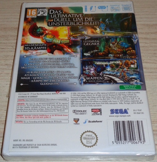 Werde zur Legende! Tritt gegen die grössten Kämpfer aus der Welt der Mythologie in epischen Waffen- und Magie-Duellen an. Bestreite gewaltige Kämpfe mit einer riesigen Auswahl an Klingenwaffen und Magie-Attacken. Nur wenige Wii-Kampf-Spiele bieten so viel Vielfalt und Herausforderungen. Epische Waffen und magische Kämpfe Intuitiver zweihändiger Kampf gegen die Legenden aus der Welt der Mythologie. Spannende Zwei-Spieler-Duelle mit der Wii-Fernbedienung™ und dem Nunchuk™. Atemberaubende Grafik mit bekannten Legenden für Wii. Riesige Auswahl an unterschiedlichen Attacken Atemberaubende und einzigartige Optik Wähle eine Legende der Mythologie