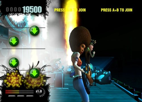 Konamis Rock Revolution sorgt für frischen Wind im Musikspielgenre. Für den nötigen Feinschliff sorgten dabei echte Rock Revolutionäre: Die Musiker, die in das Design und die Entwicklung von Rock Revolution mit einbezogen wurden, stehen auch im wirklichen Leben auf der Bühne. Rock Revolution für Wii präsentiert sich mit einer Sammlung von mehr als 40 Tracks. Deine Aufgabe ist es, die auf dem Bildschirm erscheinenden Symbole mit der entsprechenden Aktion auf deinen Instrument zu begleiten. Der Wii-Titel erlaubt mit Hilfe von Wii Remote und Nunchuk Controllern packende Air Guitar und Air Drum Sessions. Dank der bewegungssensitiven Hardware erkennt und belohnt das Spiel auch echtes Rockstar-Verhalten - seien es Luftsprünge oder das berüchtigte (und glücklicherweise nur simulierte) Zerstören von Instrumenten während der Performance. Die zahlreichen Multiplayer-Optionen von Rock Revolution machen dabei Sessions von bis zu vier Spielern gleichzeitig möglich.