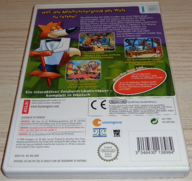 Willy V. Brecher will alle Milchkühe entführen, damit die Kinder auf der ganzen Welt ihr Frühstücksmüsli mit seiner Ziegenmilch essen müssen. Es gibt nur eine Hoffnung: Spy Fox, der aalglatte Geheimagent. Zusammen mit seiner Assistentin Monkey Penny und Professor Quack macht er sich in bester James-Bond-Manier auf, um dem Gauner das Handwerk zu legen. Aberwitzige Erfindungen wie Laser-Zahnbürsten oder Saug-O-Matik-Knöpfe helfen ihm dabei. Das Abenteuer nimmt seinen Lauf.