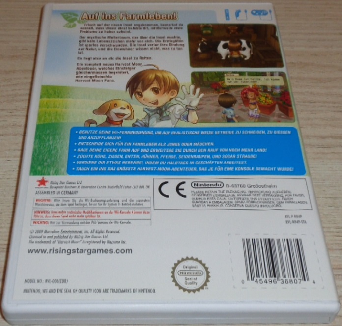 Spielen Sie als Junge oder als Mädchen und leben Sie ein entspanntes, ländliches Leben, während Sie dabei helfen, eine Inselgemeinde wieder aufblühen zu lassen. Machen Sie sich Ihren eigenen Tagesplan. Mischen Sie sich unter die Gemeindemitglieder, suchen Sie nach einem potentiellen Ehepartner, gründen Sie eine Familie und bestellen Sie Ihr eigenes kleines Stückchen Land. Übernehmen Sie zum ersten Mal in der "Harvest Moon"-Reihe auch die Rolle der Kinder Ihres Charakters und entdecken Sie neue Pflanzen, Tiere und Optionen zur Gestaltung Ihres Charakters. Speziell entwickelt für Nintendo Wii.