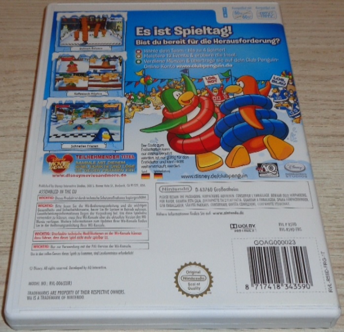 Mit CLUB PENGUIN GAME DAY! kann der Spieler die lustigen und kreativen Erfahrungen der Schnee bedeckten online Welt von Club Penguin (clubpenguin.de) zum ersten Mal auch auf der Nintendo Wii erleben. Basierend auf der beliebten virtuellen Welt, die weltweit millionen von Mitgliedern beherbergt, bietet Club Penguin Game Day! Eine Menge an neuen Mini-Spielen, die Spass und Herausforderungen für die komplette Familie mit sich bringen.