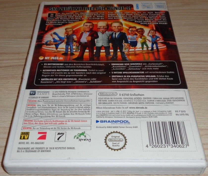 25 Wettbewerbe aus den Bereichen Geschicklichkeit, Wissen und Action, inklusive Aussenspielen. Ultimativer Partyspass im Teammodus: Tretet in zwei Teams mit jeweils bis zu vier Spielern nach den original Regeln der TV-Show gegeneinander an. Natürlich mit den Kultspielen "Blamieren oder Kassieren", "Wo liegt was", "Stimmt's" und "Schätzen". Spannende neue Minispiele wie Kartenduell, Baumfällen, Eisenbahn, Armbrustschiessen, Autoreifen, Airhockey und viele mehr. 5 witzige Spielercharaktere mit verschiedenen Outfits. Erstmals in Ich-Perspektive spielbar: Erlebe das Spiel aus Sicht des Kandidaten und tritt Stefan Raab von Angesicht zu Angesicht gegenüber.