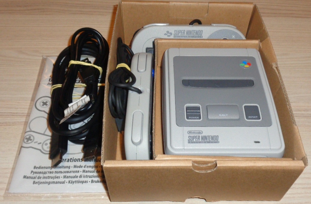 Zum Lieferumfang des Nintendo Classic Mini: Super Nintendo Entertainment System gehören ein HDMI-Kabel und ein USB-Ladekabel sowie zwei Super NES Classic Controller mit Kabelanschluss, damit sich die Käufer gleich in packende Mehrspieler-Action stürzen können. Denn etliche der installierten Spiele sind Multiplayer-Titel, etwa Street Fighter II Turbo: Hyper Fighting, Super Mario Kart, Super Probotector: Alien Rebels und Secret of Mana.