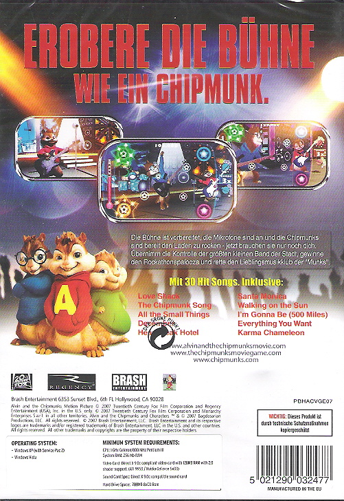 Der Soundtrack vom Alvin and the Chipmunks Video Game bietet ein Repertoire der Smash-Hits aus unterschiedlichsten Dekaden, vom Chartstürmer bis zum Kultsong, gesungen im unverwechselbaren Chipmunk-Style. Eltern werden sich an diese Songs erinnern, die viele unterhaltsame Stunden mit der Familie garantieren, während eine neue Generation von Kids Teil eines der meist verkauften Musical Acts aller Zeiten wird. Rocken bis zum Umfallen mit Alvin and the Chipmunks in ihrem brandneuen Musical-Game-Adventure.
