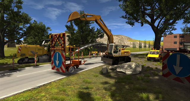 Komplett frei befahrbare Spielwelt mit Bauhof, Kiesgrube, Hafen, Campingplatz u. v. m. Viele verschiedene Spezialfahrzeuge, wie Hydraulikbagger, Planierraupe, Kaltfräse, oder Tieflader. Abwechslungsreiche Aufgaben rund ums Bauen: Fahrzeuge auftanken, neue Fahrzeuge beim Händler kaufen, Bauschutt auf dem Schrottplatz entsorgen, Baumaterial beim Baustoffhändler holen und vieles mehr. Herausfordernde grosse und kleine Aufträge: Ausbesserung von Strassen, die Verlegung von Kabeln oder der Bau von Luxusvillen, Hotels und ganzen Feriensiedlungen.