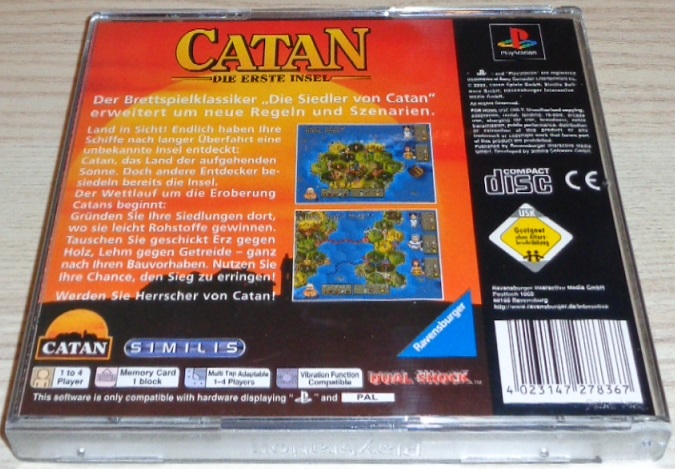 Land in Sicht! Endlich haben Ihre Schiffe nach langer Überfahrt eine unbekannte Insel entdeckt: Catan, das Land der aufgehenden Sonne. Doch andere Entdecker besiedeln bereits die Insel. Der Wettlauf um die Eroberung Catans beginnt: Gründen Sie Ihre Siedlungen dort, wo Sie leicht Rohstoffe gewinnen. Tauschen Sie geschickt Erz gegen Holz, Lehm gegen Getreide - ganz nach Ihren Bauvorhaben. Nutzen Sie Ihre Chance, den Sieg zu erringen! Werden Sie Herrscher von Catan! Altersempfehlung: ab 10 Jahre.