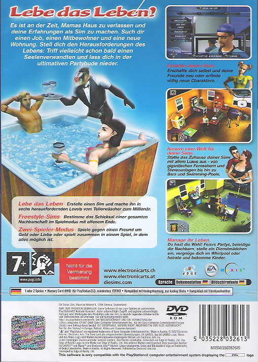 Der Spieler sollte sich auf etwas völlig neues gefasst machen! Die Sims™ sind in Kürze auch für die PlayStation.2 erhältlich! Das erfolgreiche PC-Spiel hält sein Konsolen-Debüt. Der Spieler erstellt und kontrolliert seine Sims auf PlayStation.2 mit neuem level-abhängigem Gameplay und 3D-Grafiken. Er gestaltet die Persönlichkeit und das Aussehen seiner Sims und zieht dann in die Nachbarschaft ein. Er sucht sich einen Job, findet Freunde, macht Karriere und erlebt die großen Momente des Lebens. Nebenbei schaltet er neue Objekte und größere Häuser frei. Er trifft die vielen unterschiedlichen Charaktere in seiner Nachbarschaft, flirtet oder streitet mit ihnen. Er hat außerdem die Möglichkeit, seine Sims in einem Spiel einer seiner Freunde zu laden und zu zweit zu spielen.