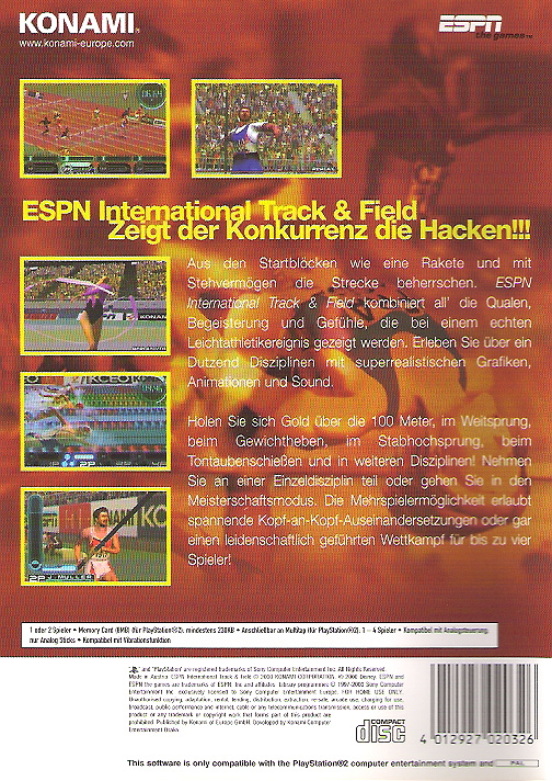 Konamis Track-&-Field-Serie ist seit über 15 Jahren eine der hochwertigsten und zugleich erfolgreichsten Leichtathletik- Simulationen für Videospielkonsolen wie auch in der Spielhalle. Sie schrieb die Vorlage für viele Imitate, die niemals die Qualität des Originals erreichten. Diese lange Tradition wird nun auch auf PlayStation 2 kompromißlos fortgeführt. Dank der Power von Sonys Superkonsole sehen die Spiele nun besser aus als je zuvor. Gepaart mit dem preisgekrönten Track-&-Field-Gameplay ergibt sich das Leichtathletik-Spektakel schlechthin.