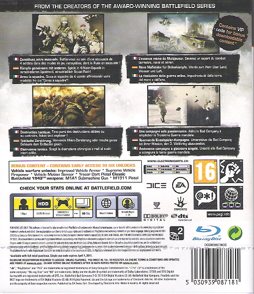 In Battlefield Bad Company 2 müssen sich Haggard, Sarge, Sweetwater und Marlowe aus der „B“-Company einen Weg durch verschneite Berggipfel, undurchdringliche Dschungel und staubige Dörfer bahnen. Ausgerüstet mit einem gewaltigen Arsenal todbringender Waffen und jeder Menge Fahrzeuge, nehmen die Jungs den Kampf auf – wild entschlossen, alles in die Luft zu sprengen, abzuschießen, zu durchbrechen, zu eliminieren und komplett zu zerstören, was sich ihnen in den Weg stellt.