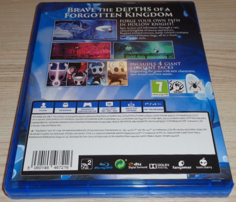 Begib dich in die finsteren Tiefen eines vergessenen Königreichs - in Hollow Knight, einem atmosphärischen und fordernden Action-Abenteuer für die Playstation 4. Erkunde die gewaltige Welt von Hallownest, decke uralte Mysterien auf und besiege eine bedrohliche, böse Macht. Erkunde ein einzigartiges Königreich in der Unterwelt Tief unter der verfallenden Stadt Dirtmouth liegt Hallownest, eine ehemals glanzvolle Zivilisation, die nun in Trümmern liegt. Abenteurer und Diebe zieht es gleichermassen in diese Unterwelt auf der Suche nach Ruhm, Reichtum und Antworten auf uralte Mysterien. Die verfallenen Hallen werden inzwischen jedoch von niederträchtigen Kreaturen und bizarren Biestern heimgesucht, die durch ein Gift in der Erde verdorben wurden. Reise als der Titelheld Hollow Knight tief ins Innere eines riesigen Labyrinths aus Höhlen, Korridoren und zerstörten Städten, die zusammen ein unheimliches Königreich bilden. Unter der Erde finden sich Städte und Siedlungen, in denen jede Menge seltsamer und gleichzeitig faszinierender Charaktere leben. Bahne dir einen eigenen Weg durch die Unterwelt, erkunde jede Ecke und jeden Winkel, und stelle dich den bösartigen Kreaturen, die Rätsel und Schätze bewachen. Bekämpfe wilde Widersacher Möchtest du noch tiefer in die Dunkelheit vordringen, solltest du dich gegen Horden finsterer Feinde wappnen! Entkomme flink gegnerischen Angriffen, weiche Wurfgeschossen aus, springe von Wänden ab, um dich nach oben zu katapultieren und greife dann mit deinem Schwert und deinen mächtigen Fähigkeiten an. Besiegte Gegner lassen Geo zurück - Fossilien, die gegen neue Items und Abkürzungen eingetauscht werden können - und setzen eine mystische Energie frei, die deinem geschundenen Körper neue Kraft gibt oder sich in neue Fähigkeiten umwandeln lässt. Wirst du im Kampf besiegt, bleibt an deiner Stelle nur ein Schatten deiner Selbst zurück - finde ihn und besiege ihn, um deine Reichtümer wieder an dich zu nehmen!