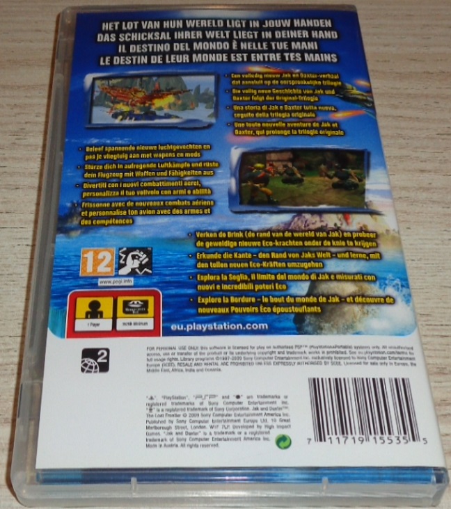 Das dynamische Duo Jak und Daxter ist zurück in einem brandneuen Abenteuer für PSP und PS2, und die Action geht genau da weiter, wo sie in den drei Teilen zuvor endete! Der Heimatplanet von Jak und Daxter stirbt langsam durch den Mangel an hellem Eco. Um die Lage zu retten, verbünden sich unsere Helden mit ihrer alten Freundin Keira und machen sich auf die Suche nach der uralten Precursor-Maschine, die ihren Planeten vor dem Untergang retten soll. In Kämpfen gegen die Sky Pirates (Himmelspiraten) in einem modifizierbaren Flugzeug oder Schusswechseln mit den Aeropeans (Aeropäern), bei denen sie den zerstörerischen Gunstaff weapon (Kanonenstab) einsetzen, geraten Jak und Daxter über den Brink (Rand) hinaus und mitten in einen Krieg, der grösser ist, als sie es sich je vorstellen konnten.