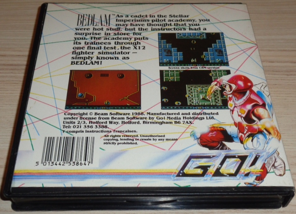 Zur Geschichte: Als Offiziersanwärter der Pilotenakademie des Sternenimperiums warst Du der Meinung, dass Du etwas Besonderes bist. Doch die Ausbilder haben noch eine Überraschung für Dich. In der Akademie müssen alle Piloten einen abschliessenden Test bestehen: Den X12 Kampfsimulator - auch einfach BEDLAM genannt. Zum Spiel: Das Spiel besteht insgesamt aus 17 Leveln. Level 1 bis 16 sind jeweils eine Weltraumstation, Level 17 ist eine spezielle Bonus-Aufstellung. In den verschiedenen Weltraumstationen befinden sich zahlreiche Objekte. Kanonen und Radar kann man abschiessen, Kraftfelder sind unzerstörbar aber tödlich, an Pyramiden prallt man ab. Zusätzlich gibt es verschiedene Felder mit einem Bonus, den man durch Überfliegen aufnimmt. So kann man zum Beispiel in einen von insgesamt 4 Flippern (Pinball) teleportieren. Nachdem alle 17 Level abgeschlossen wurden, beginnt das Spiel mit einem höheren Schwierigkeitsgrad von vorne.