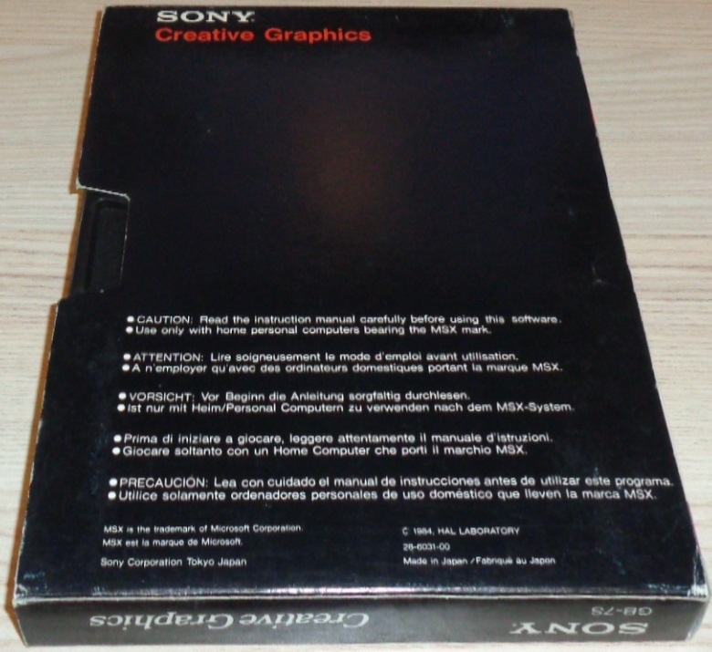 Diese Cartridge von HAL Laboratory ist die kreative Grafik-Suite für das Sony MSX Videogame System.