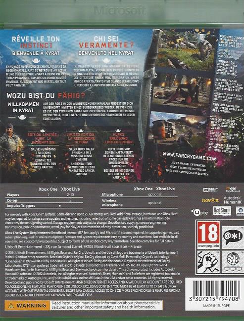 Kyrat, ein Land voller Traditionen und Gewalt, liegt versteckt in den schwindelerregenden Höhen des Himalayas. Du bist Ajay Ghale. Um den letzten Wunsch deiner Mutter zu erfüllen, kamst du nach Kyrat, und findest dich nun inmitten eines Bürgerkrieges wieder, durch den das tyrannsiche Regime von Diktator Pagan Min gestürzt werden soll. Erlebe die vielseitigste Far-Cry-Welt, die je erschaffen wurde! Das Terrain erstreckt sich über üppige Wälder bis hoch zu den schneebedeckten Gipfeln des Himalaya und ist überall gleichermassen lebending ... und tödlich.