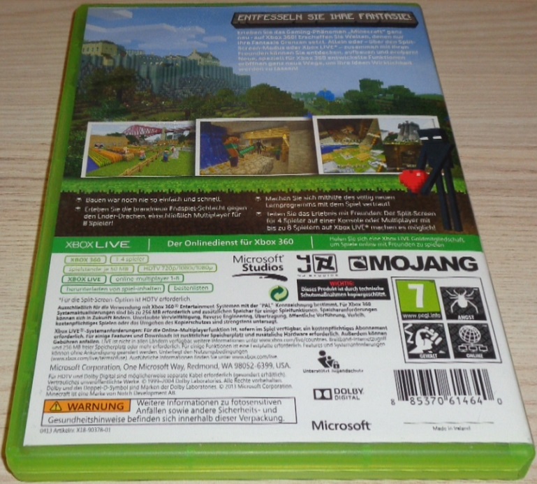 Minecraft, das globale Spiele-Phänomen, ist nun auch im Handel erhältlich, sodass endlich auch Xbox 360 Besitzer, deren Konsolen nicht mit dem Internet verbunden sind, in den Genuss des legendären Casual Games kommen und nach Herzenslust bauen, entdecken und kämpfen können. Minecraft Xbox 360 Edition umfasst die aktuellste Version des Spiels und ist exklusiv für Xbox 360 zu haben.